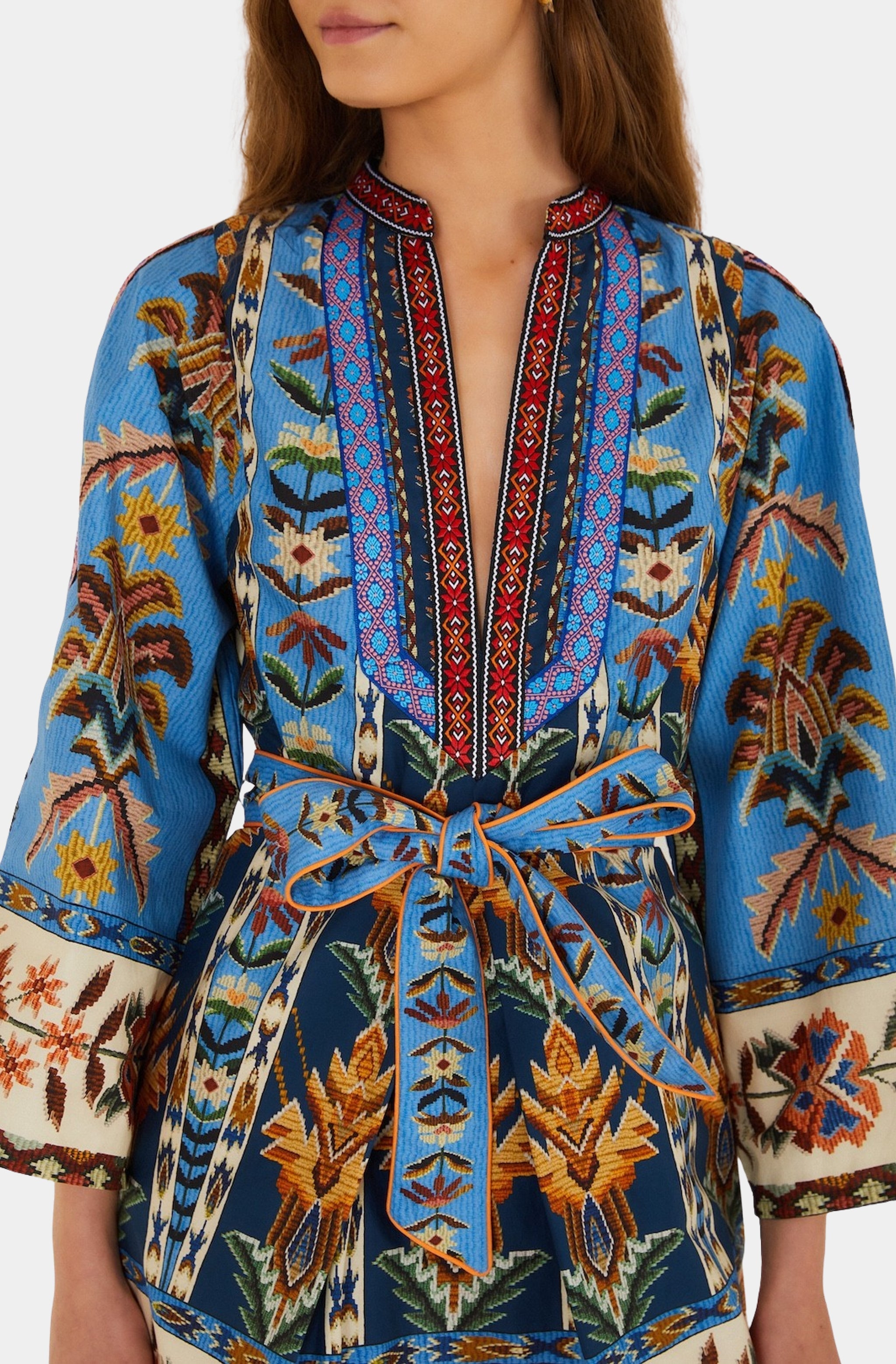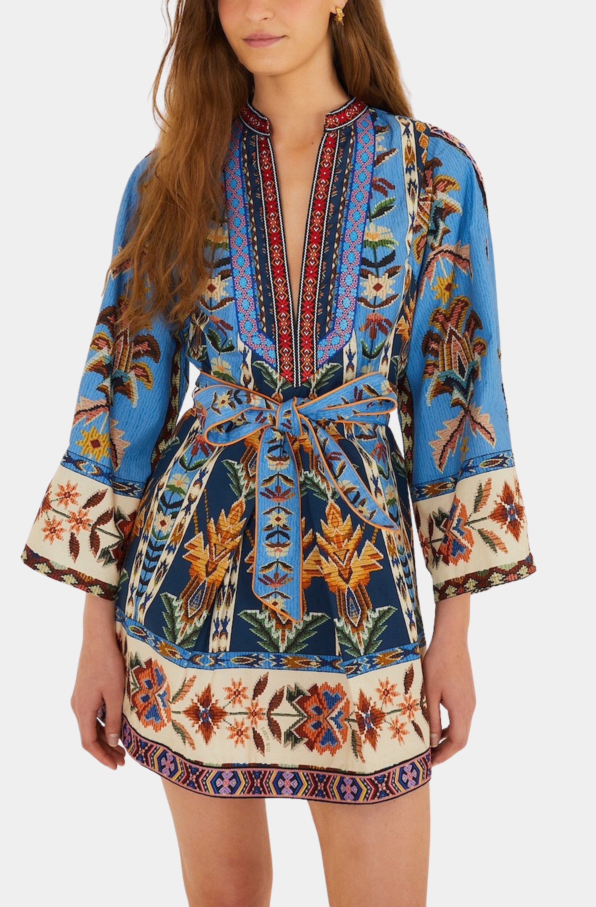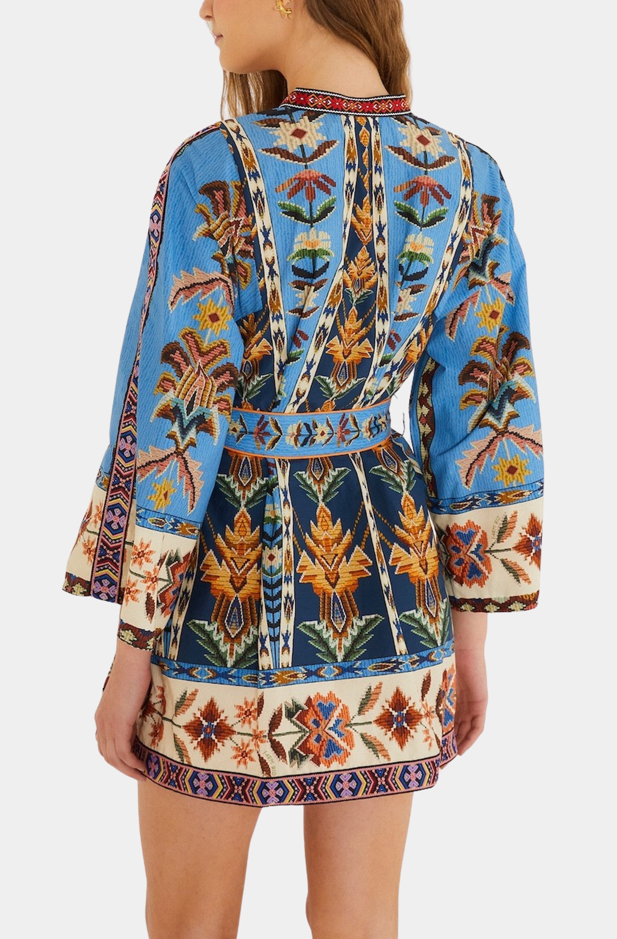 Farm Rio Embroidered Tapestry Blue Mini Dress
