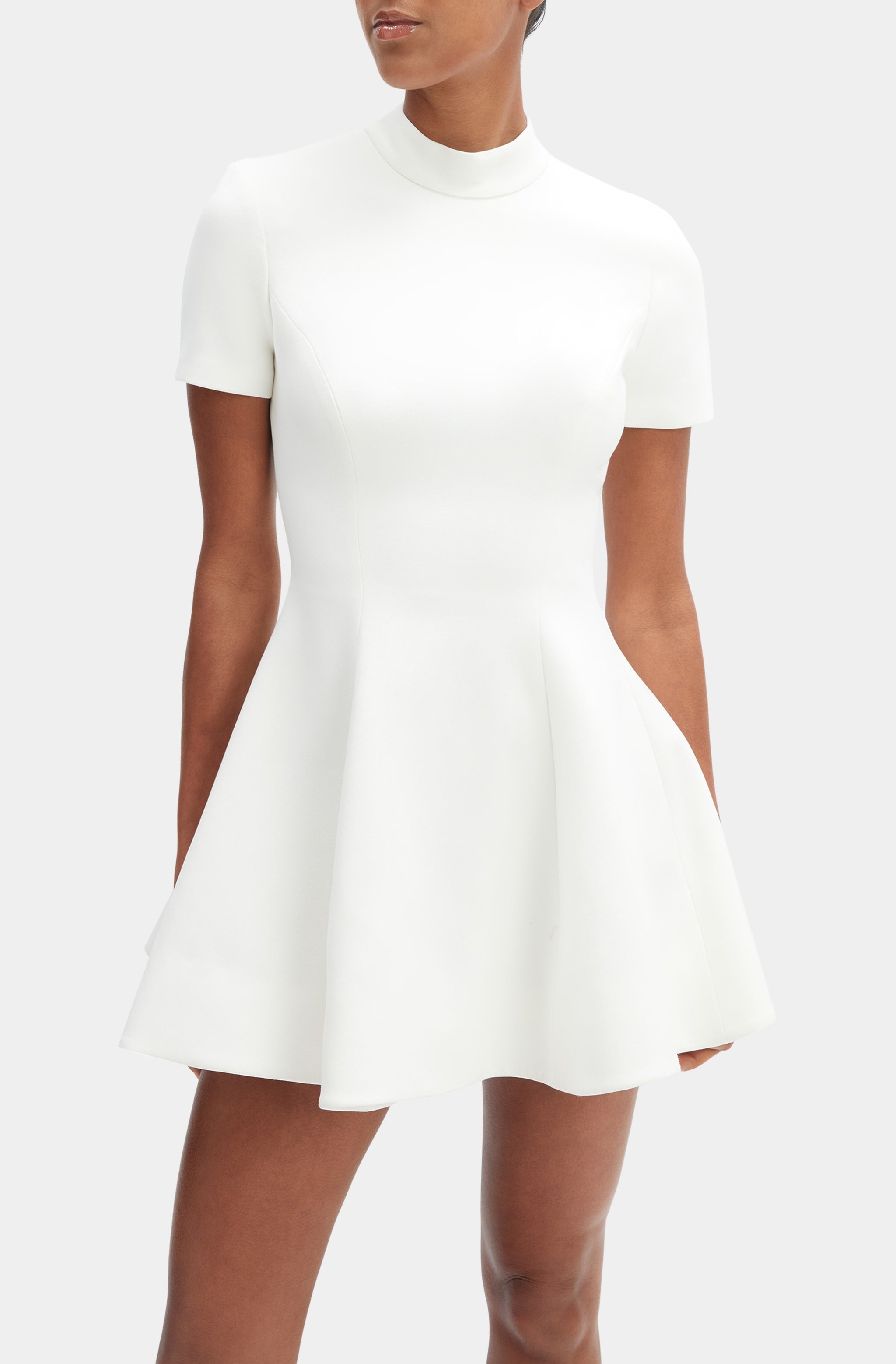 Elevate your wardrobe with the Zephyra Collar Mini Dress, a perfect blend of elegance and modern style. This fit and flare mini dress features a sophisticated high neck and short sleeves, making it an ideal choice for bridal events or any special occasion. The pristine white hue adds a touch of timeless grace, while the flattering silhouette ensures you look your best. Embrace the charm and versatility of this stunning dress, designed to make you stand out effortlessly.