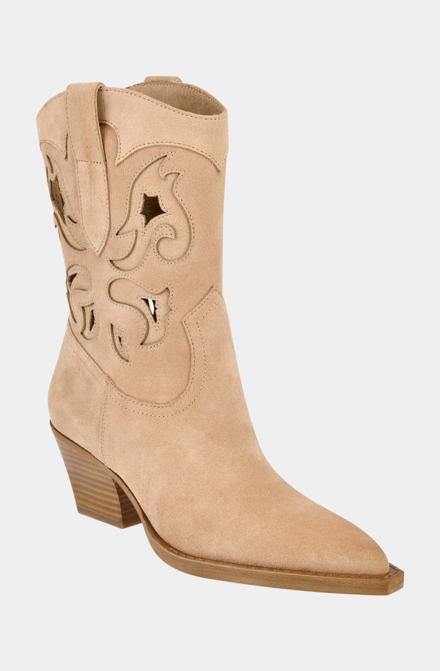 The Ravena Boot from Dolce Vita is a stylish addition to any wardrobe, crafted from luxurious bamboo suede. This cowboy boot features a comfortable block heel, perfect for all-day wear. Its versatile design makes it an ideal choice for both casual and dressy occasions. Elevate your footwear collection with these chic and durable boots.